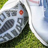 大きなポイントは、世界トップツアーレベルの戦いでも威力を発揮するグリップ力だ。アクシネット ジャパン インク社フットジョイ事業本部の星裕介本部長は「アウトソールにある一つひとつのラグ(突起)がどのように働いているかを検証し、配置や数、場所によって最適な形状に変えることで、スパイク以上のグリップ力を作り上げました。それが8の字が特徴的なインフィニティアウトソールです」と説明する。ソール形状を研究し尽くすことで、スパイクに負けないレベルのグリップ力を得ることに成功した。