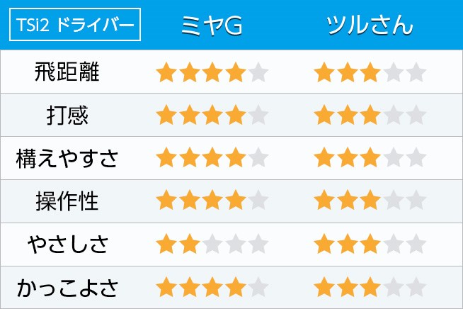 前作の「TS2」も、曲がりにくくて低スピンで飛ばせる高性能なドライバーでした。「TSi2」になってヘッドシェイプや構えやすさが洗練されているし、ヘッド性能はさらに飛ばしやすくなっています。ただし、この標準シャフトはゴルファーによって好みがはっきり分かれます。そこだけがウィークポイントです。