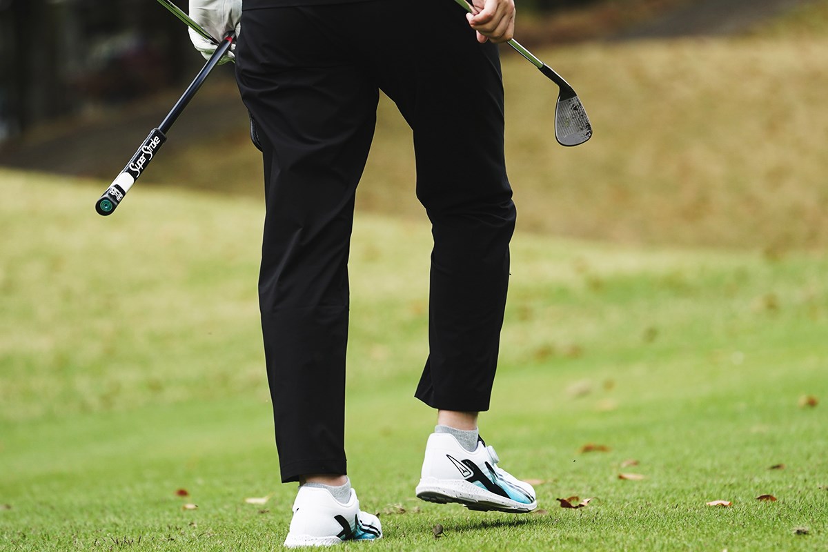 一歩一歩、足には負荷が掛かるはずですが、プレー後の疲労感が少なく驚きました。シューズが軽いおかげで足が自動的に動く感覚があり、重いシューズに比べてホールアウト後の疲労の蓄積が少ないのでしょう。「歩きのプレーがしんどくなってきた」と思うゴルファーには、ぜひ試して頂きたい一足です。(バイヤー・塩田)