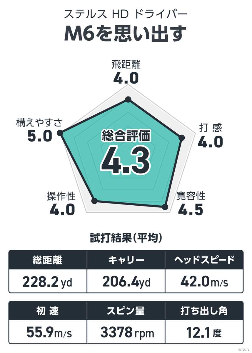 「『HD』を打って、パッと思い出したのは同社の『M6 ドライバー』。いまだに手放せないという人がいるほどの名器ですが、今回はそんな人でも替え時と言えるかもしれません。『M2』『M4』と並び、やさしさを感じられる『M』シリーズの偶数モデルの中でも、特に赤色のカラーリングが近い印象で、打点がズレても弾道が上がりやすい部分など、似ている点が多いように感じられます」