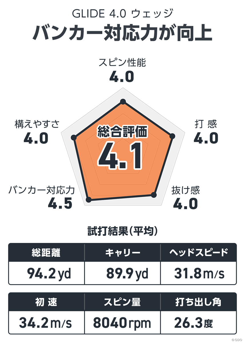 バンカー対応力4.5点以外は全て4.0点【総合評価4.1点】