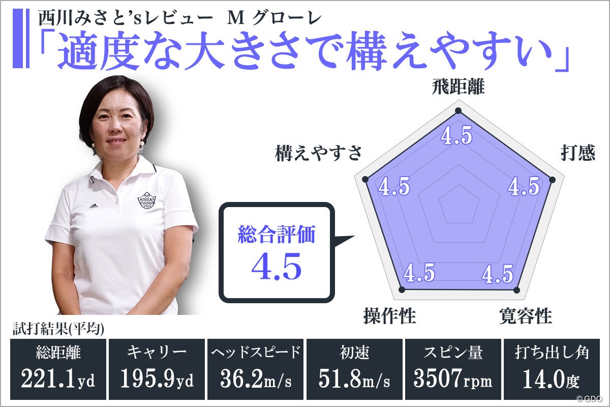 「構えやすくて、打感もすごく感触が良くて、高評価です。『グローレ』と『Mシリーズ』を足して、総合的に使いやすくしたようなクラブですね」