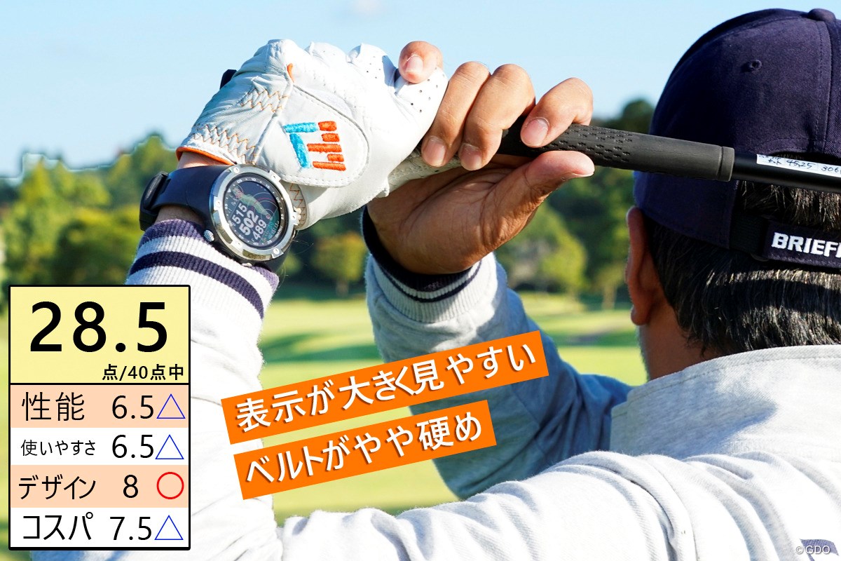 「画面上の数字は大きくて見やすいですし、コストパフォーマンスも悪くないのですが、着け心地と使いやすさが気になりました。着け心地は、ベルトが硬く、脱着がやや煩わしい印象。操作ボタンも硬めで押しにくい点も気になります。また、表示のコース図がリアルに描きすぎていて、もう少し簡素化したイラストのほうが、プレー中にパッと見て把握しやすい印象を受けました」