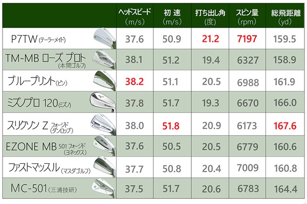 すべて7I、シャフト硬さSで計測。トラックマン4にて測定
