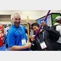 SLOPY君と写真に収まる橋本コーチ