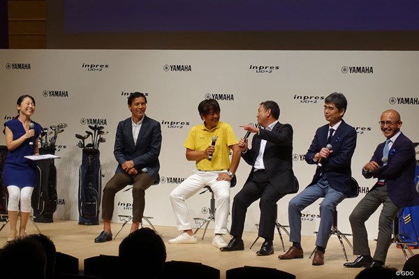 新UD+2発表会でゲストとともに壇上に上がる柴氏(一番右)