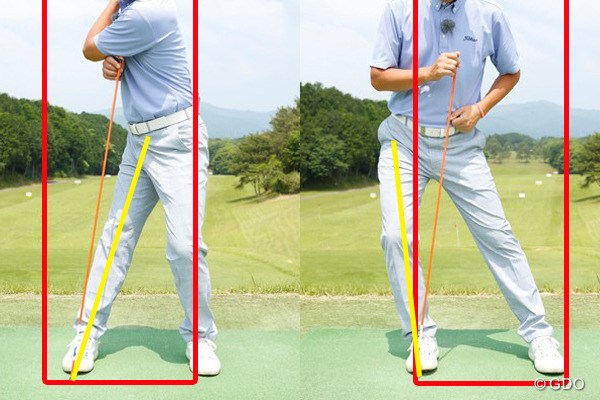 右足の軸がブレると、スイング中にボックスからハミ出しやすい