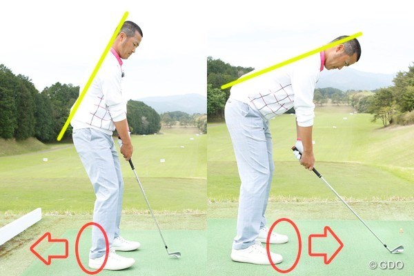 体の重心が前後にズレてもスイング軌道が変わる