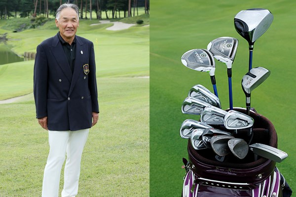 ホウライカントリー倶楽部のクラチャン、磯誠一さん(左)。地クラブのドライバーを使うなど60歳を過ぎても向上心旺盛