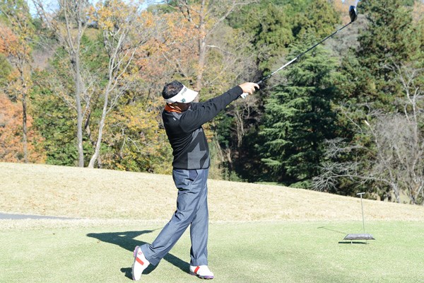 フォローは低く抑えるイメージで。スピン量を減らすことで低く直進性ある弾道が出やすい。傾斜を利用して、ランで飛距離が稼げる(2015/12/11)