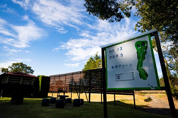 13番のティイングエリアとアプローチ練習場の仕切り版