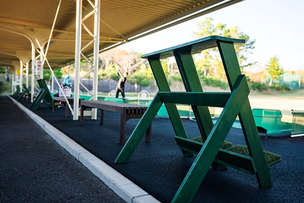 練習場のゴルフバッグ置き場