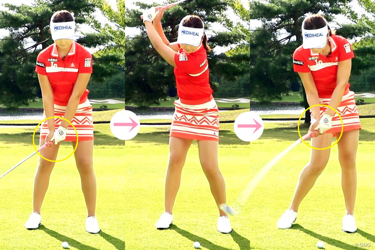 手の動きが強すぎてしまうと、イメージ以上にヘッドが早く上がり、体の正面から外れてしまいます。手の動きは「フワァ~」っと、ゆっくり動かすこと。必ず体の正面にヘッドが位置していることを確認しましょう。