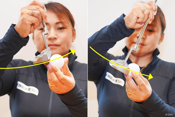 画面左が撫でるように打つ人、右が上からとらえる人