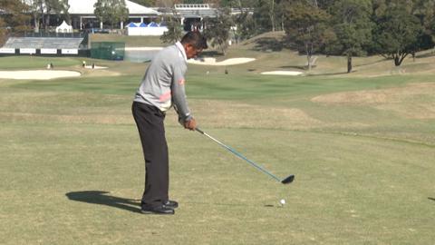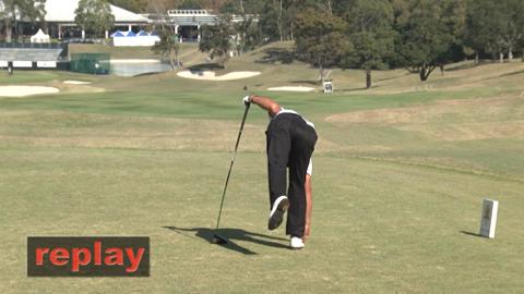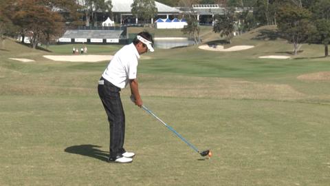 一連の流れの中で打つ それでは、室田淳選手のルーティンを見ていきます。 まずボールの後ろで目標を確認します。 この時にも、ヘッドを走らせる、リズム良く振るという動きをしていましたね。 そしてボールの手..
