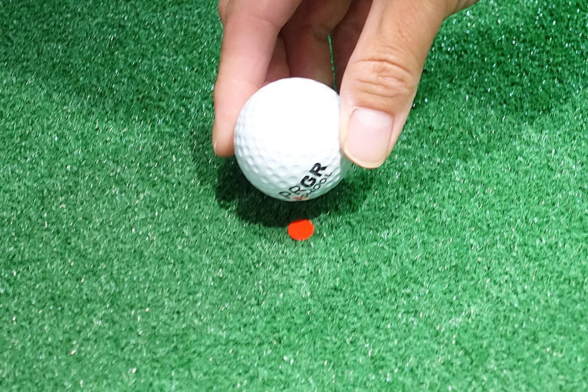 シールを上手く剥がせるようになったら、今度はシールの上にボールを置いて、同じく、シールを剥がすようなイメージで振ってください。ボールを打つのではなく、シールを剥がすイメージをキープしましょう。コースでも、ボールを打とうとせず、そのようなイメージで振ることを意識すれば、トップしなくなりますよ。