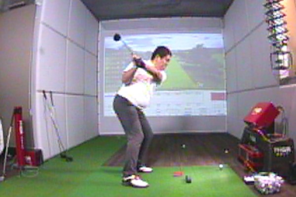 そして、フェースの開き具合もかなりの度合いです。トップ(あるいは切り返し)でフェースが体の正面方向を向いていて、これだけ開けば、フェースをスクエアに戻すのは困難です。また、軸が左に倒れるので、オーバースイングになり、さらにフェースを戻すのを難しくしています。ウィークに握っているので、グリップの時点から、かなりフェースが開いていると考えられます。