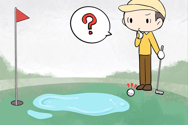 グリーンのライン上に水たまり… 正しい救済方法は?