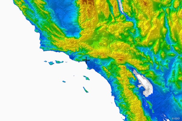 +の位置がロサンゼルスCC(地理院地図 標高地形図)