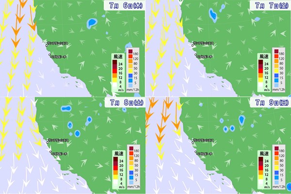 4日間の風の強さと風向き(2023/07/06)