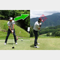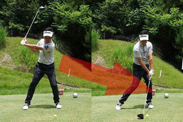 目線が下がると左足体重になりやすく、軌道はダウンブローに